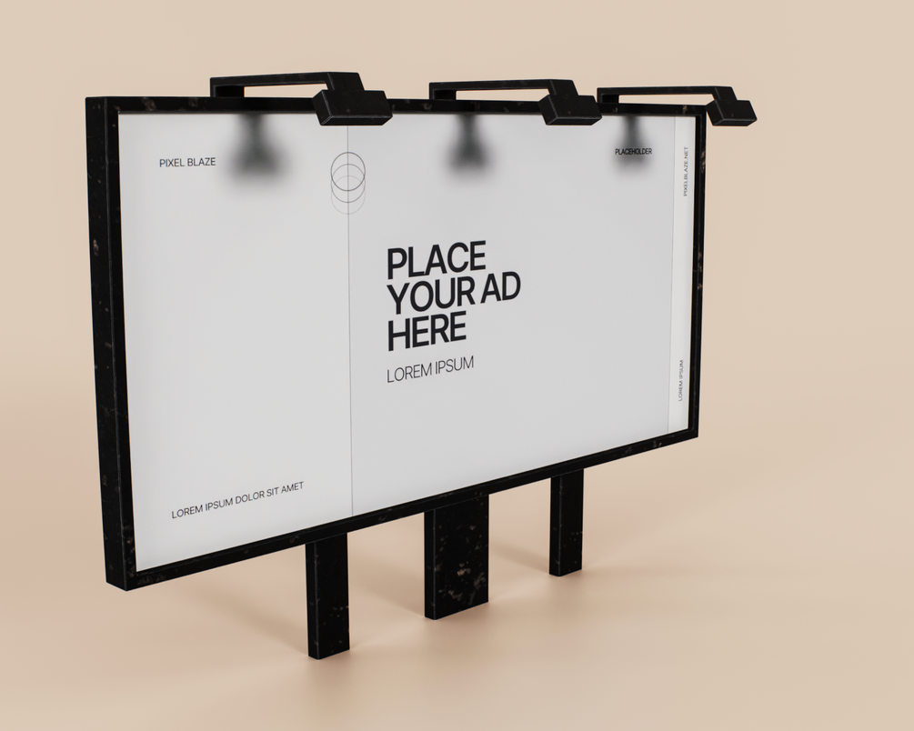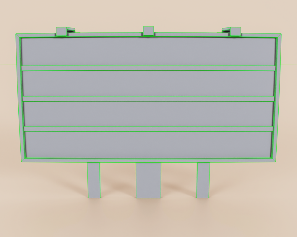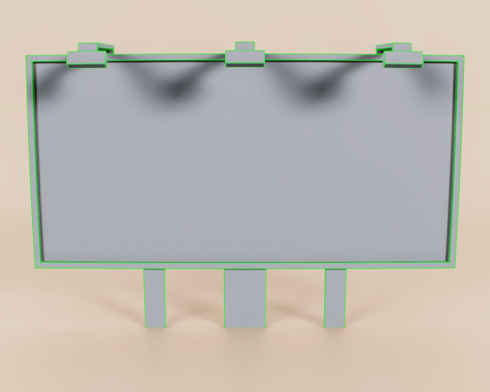 Realistic game-ready low-poly 3D model with clean topology. The billboard's advertising panel has a 16:9 aspect ratio.