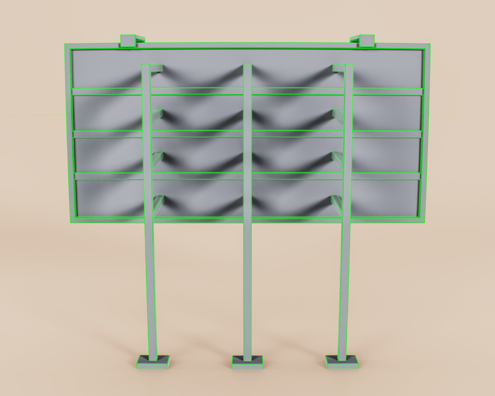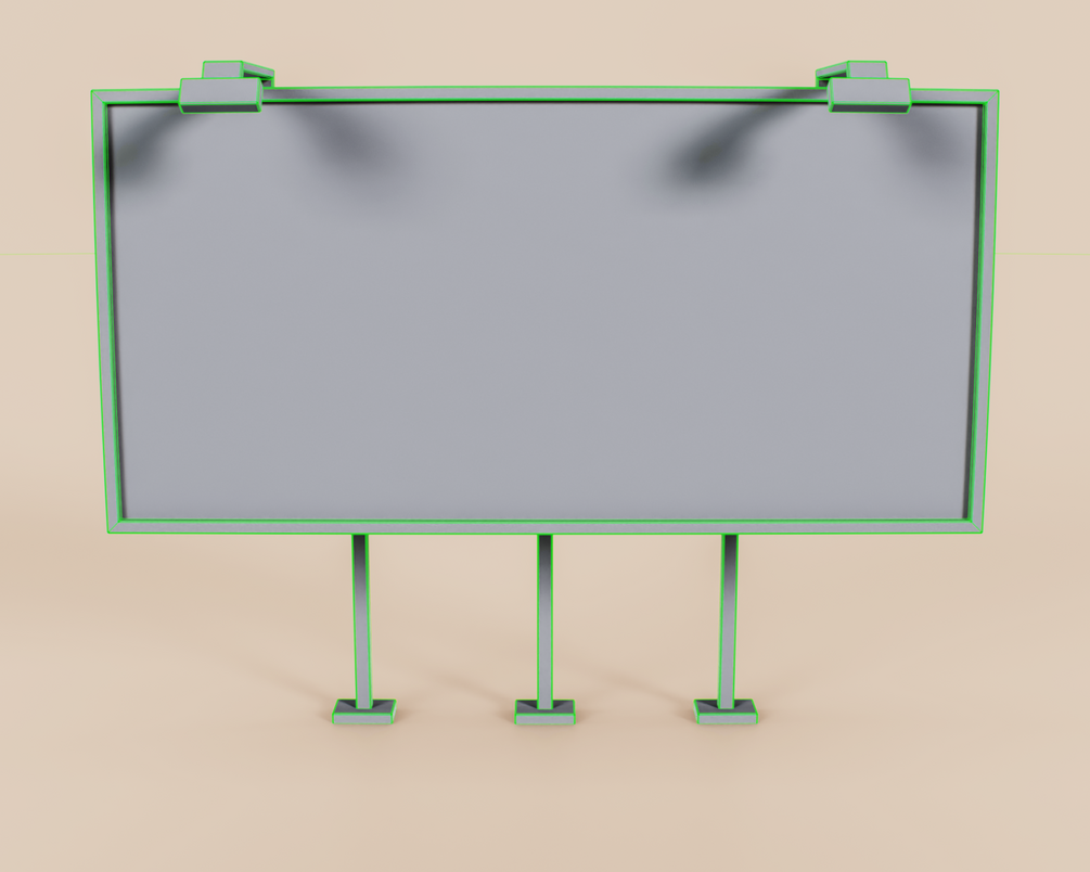 Realistic game-ready low-poly 3D model with clean topology. The billboard's advertising panel has a 16:9 aspect ratio.